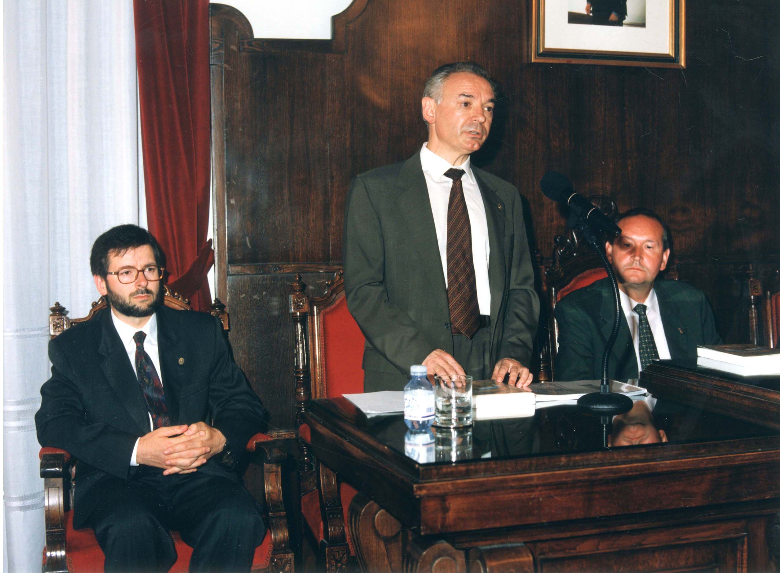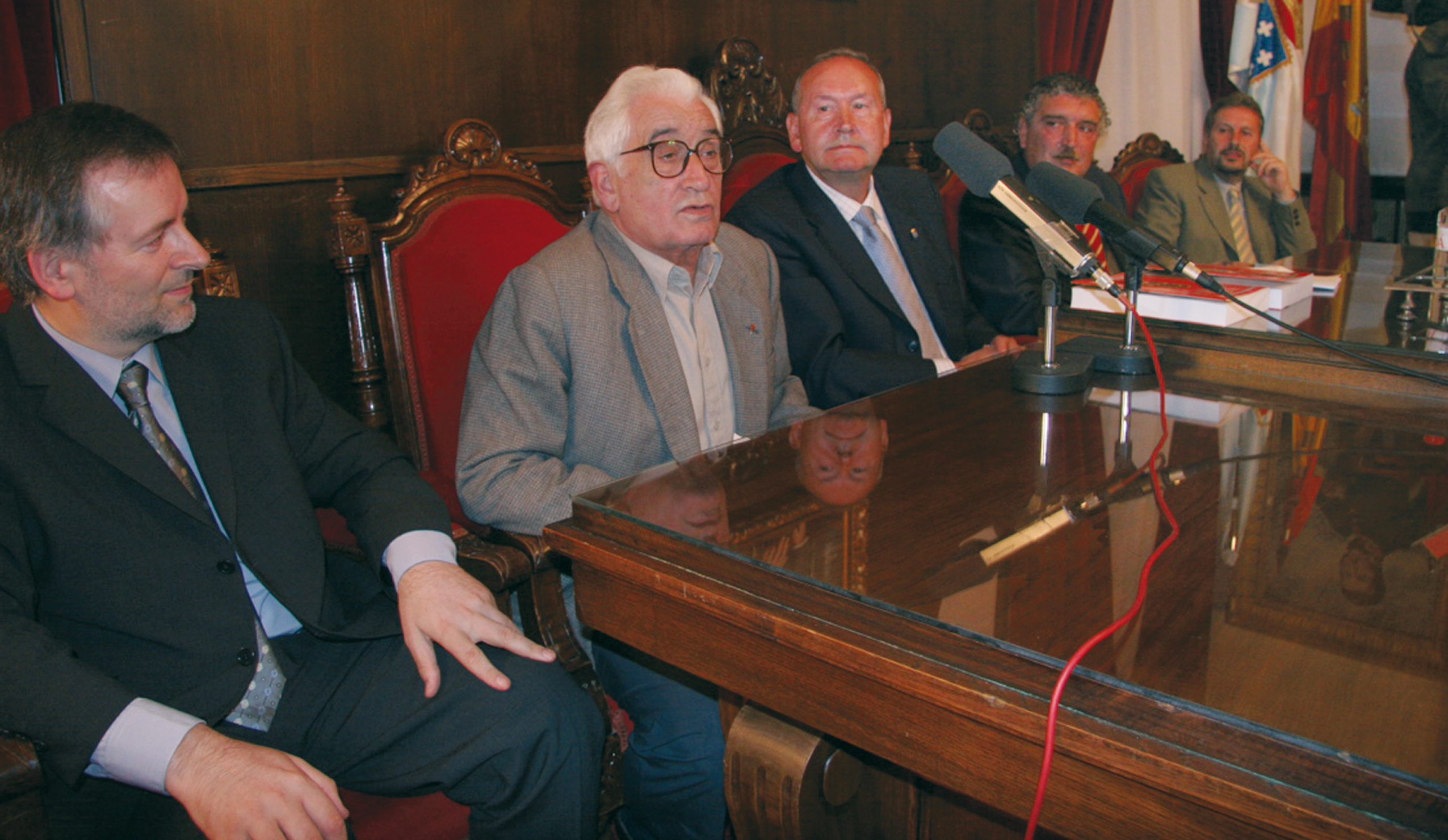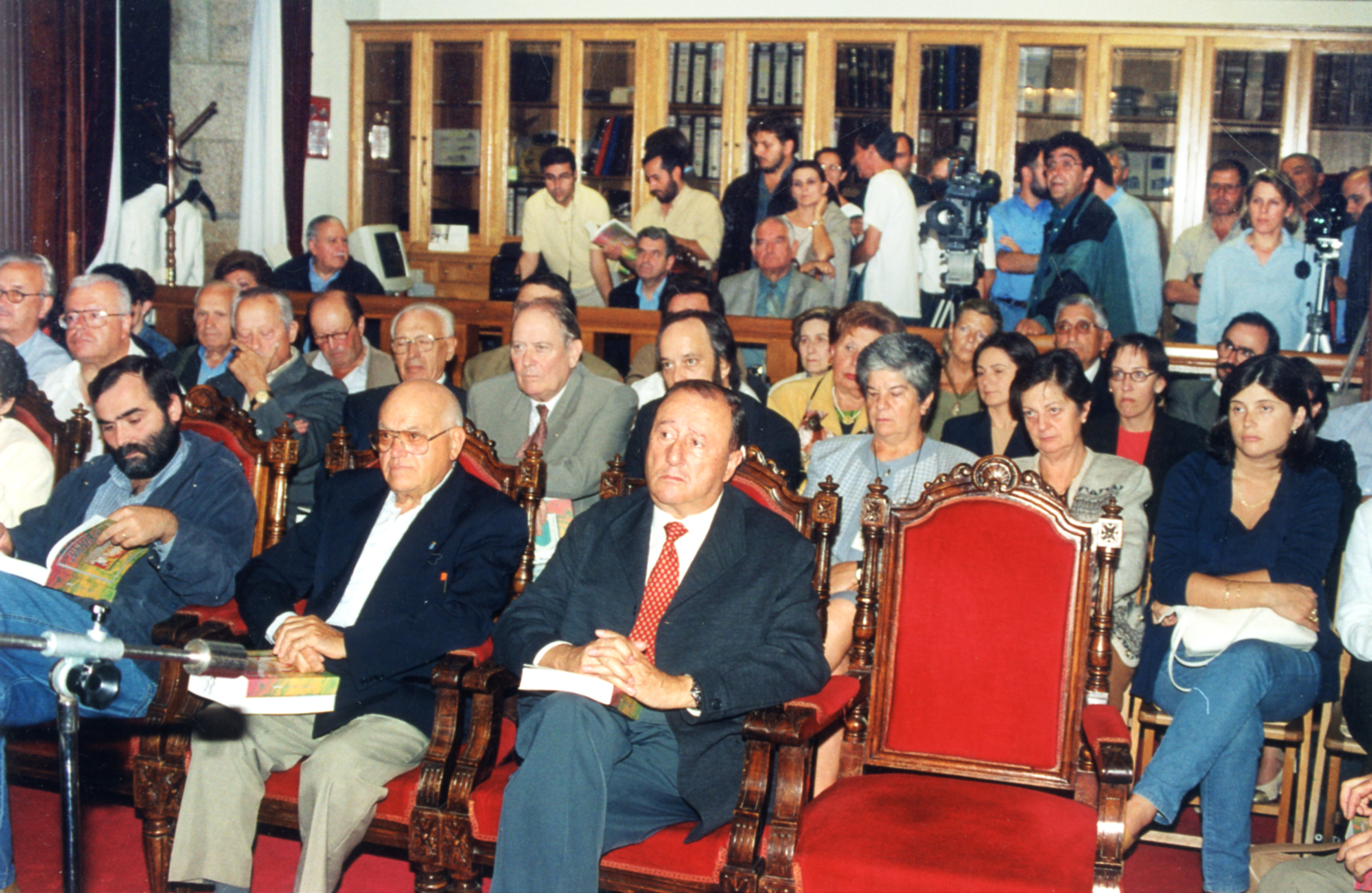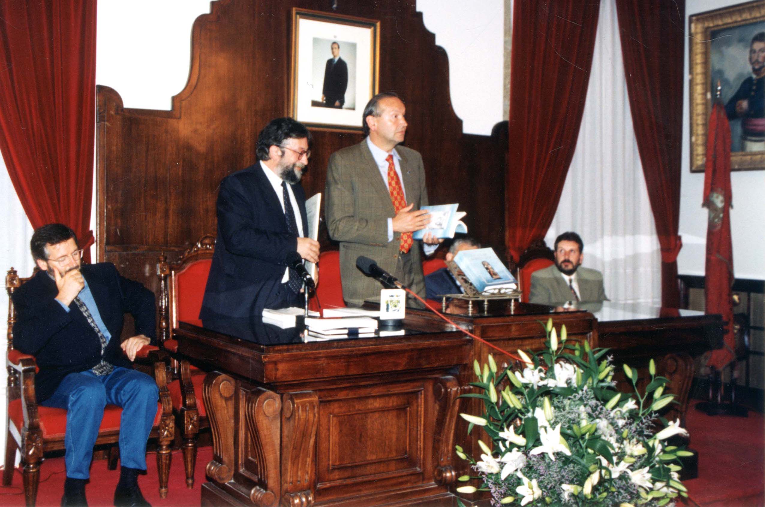 de setembro de 1995). Alfredo Erias Martínez (director), Baudilio Barreiro Mallón (presentador, catedrático de Historia Moderna da Universidade da Coruña), Manuel Lagares Pérez (alcalde) e Francisco Díaz Pereira (concelleiro de Cultura), (?) |
