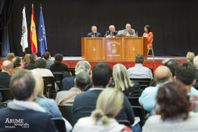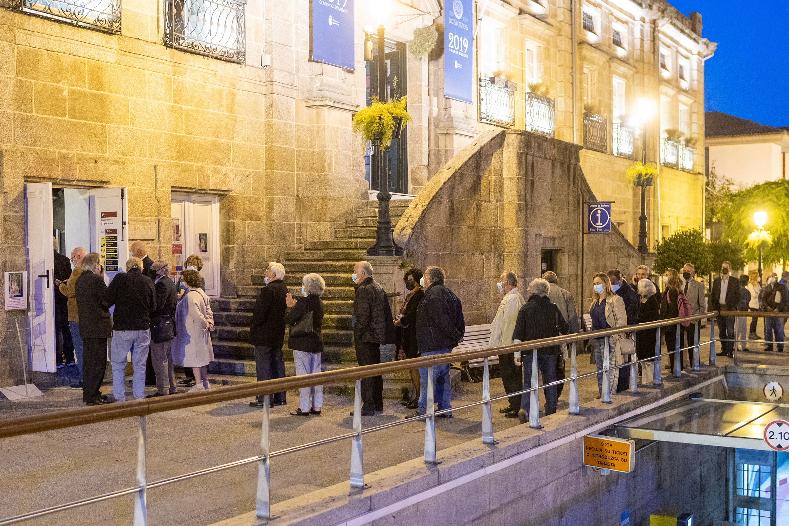 A alcaldesa, María Barral Varela, Alfredo Erias Martínez (director), o catedrático de Arqueoloxía, Martín Almagro Gorbea, presentador, e Ana Belén Veiga Pita, concelleira de Cultura. Mapas do desastre pandémico debido ó COVID 19. Fotos: Arume. |