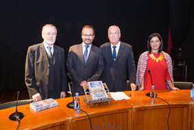 37 (2 de outubro de 2015). Alfredo Erias (director), José Luís Mosquera Camba (presentador, profesor do IES Francisco Aguiar, doutor en Xeografía e Historia, poeta e colaborador do Anuario Brigantino), Ramón García Vázquez (alcalde) e María Barral Varela (concelleira de Cultura). Fotos: César. |
